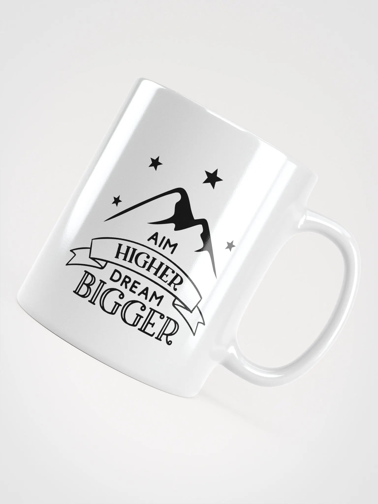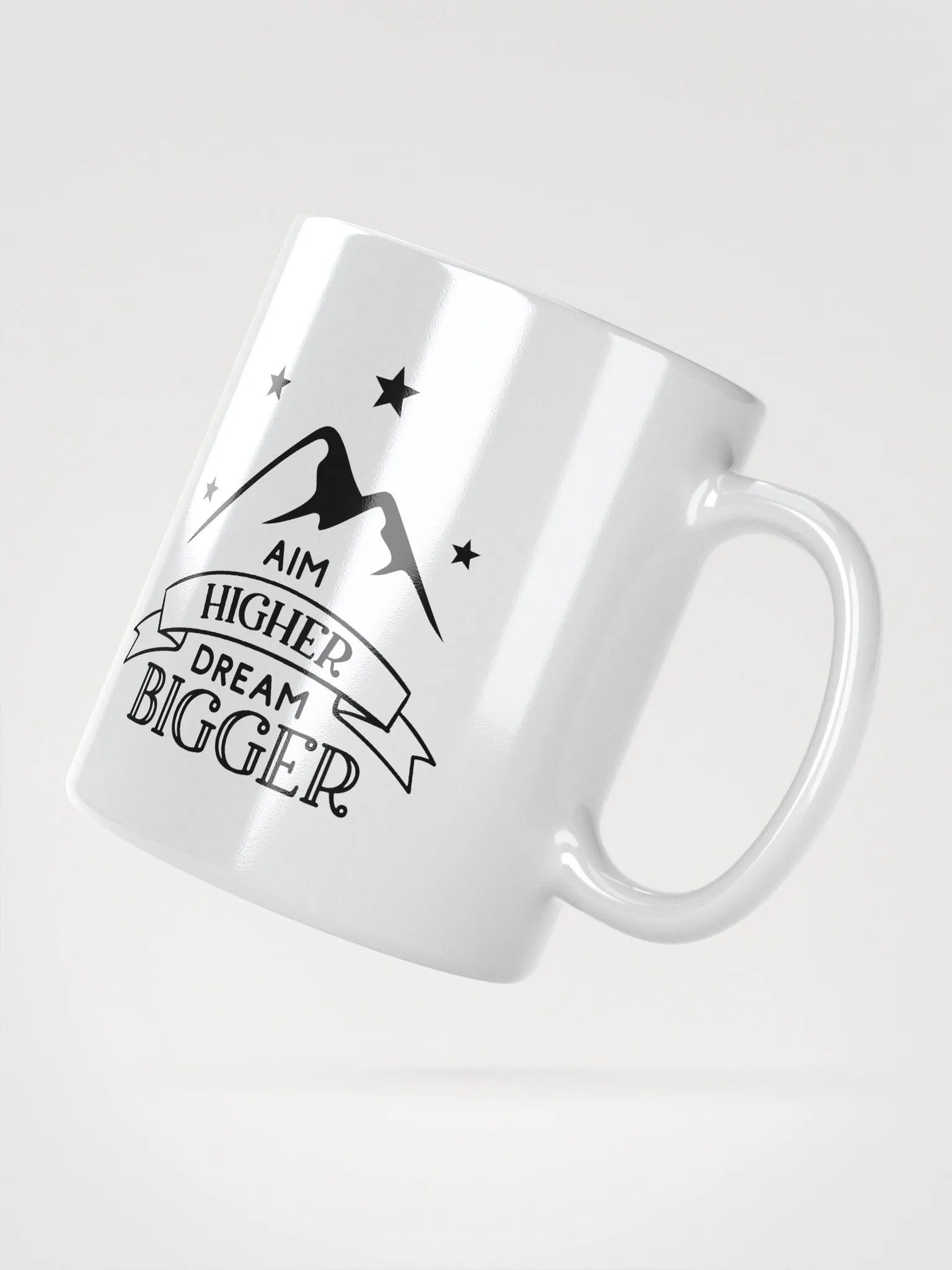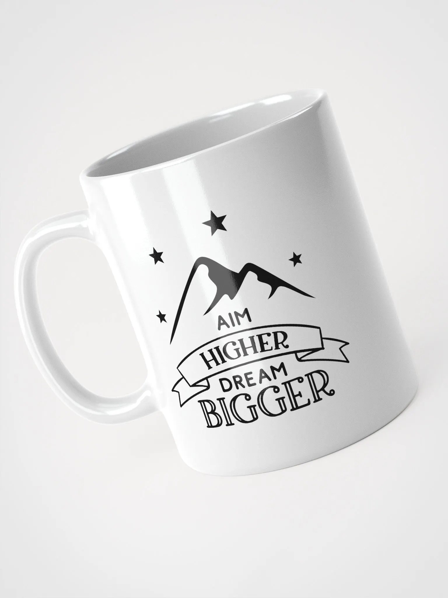 This charming coffee mug features the heartwarming quote, "Aim Higher Dream Bigger,"  it’s a great way to start your day with a smile and your favorite beverage!